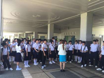 平和の集いが終わり、今から平和祈念資料館への見学です。戦争の追体験をしっかりしましょう!