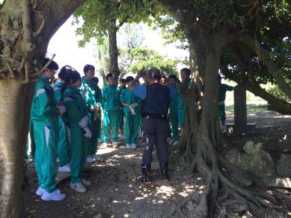 山城本部壕にきています。平和ガイドさんに当時の様子を聞き、壕の中へ入ります。