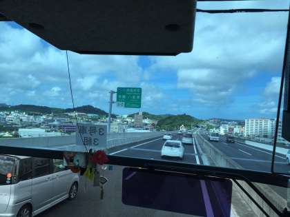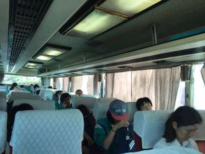 各クラスに分かれて壕体験が終わり、本部港にバスで向かっています。朝が早かったからか、疲れが出てきました。