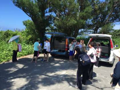 GIビーチにきています。2件の民家さんが遊びにきていました。生徒は、サンゴを拾っていました。