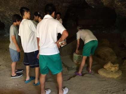 男の子も、ニィヤティヤ洞のビジル石を持ち上げています。