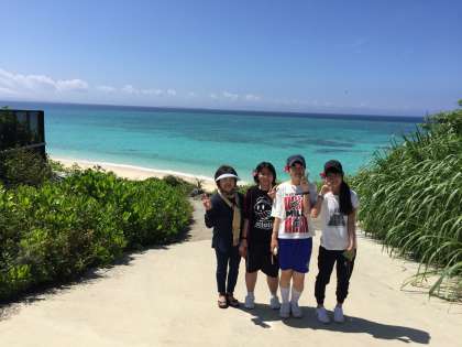 GIビーチにやってきました。紅型の花飾りがとってもオシャレです。