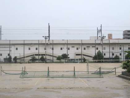 グラウンドのネットは朝練のサッカー部がすでに倒してくれています。