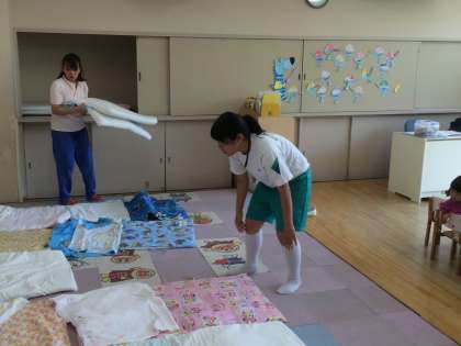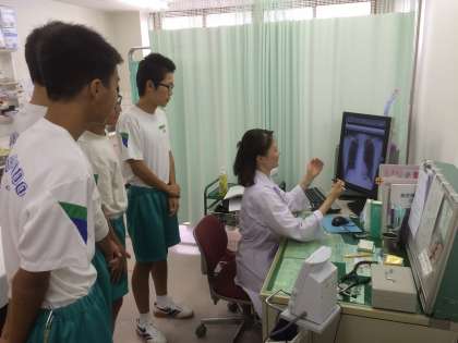 職業体験の2日目です。写真は阪奈病院、聖心保育園での体験の様子です。