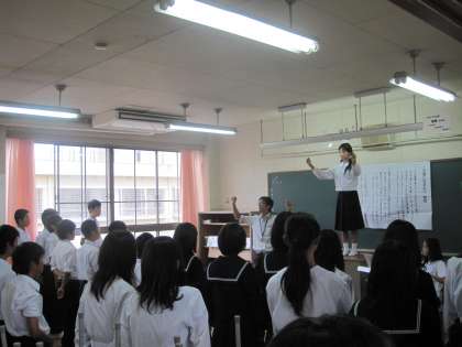 写真(中)は2年生の練習場所で1年生が見学、鑑賞をしている様子です。