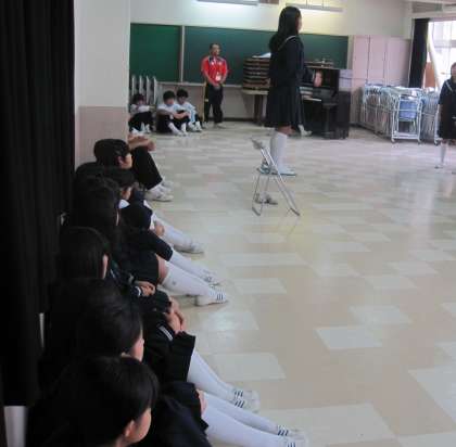 廊下を歩いていて、「うちのクラスの歌を聴いてください」とみんなが目で訴えているクラスがあったので立ち止まって聴いてみると、期待通りの歌声でした。