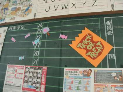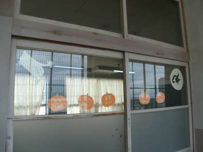 写真1枚目と2枚目は、分割C教室に飾っているハロウィーンのデコレーションです。