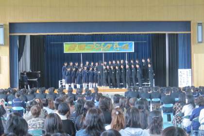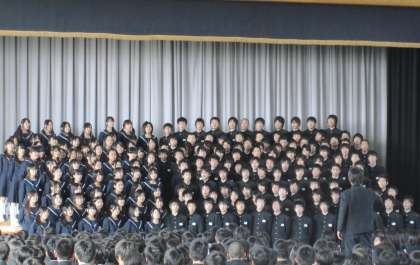 ※写真は昨年度の3年生(63期生)の合唱コンクール、学年合唱の様子です。