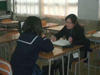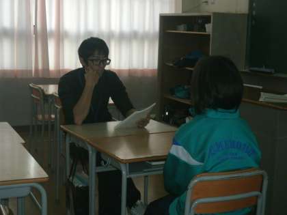 1,2年生は担任の先生と二者懇談。45分授業が5限まであり、清掃・終礼、その後、懇談となります。