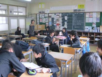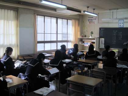 写真:テスト風景は撮影禁止ですので、待機している生徒の様子です。