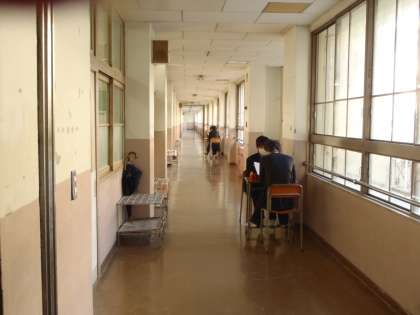 2者懇を待っている間、教室の中で真剣にプリント学習に取り組んでいます。