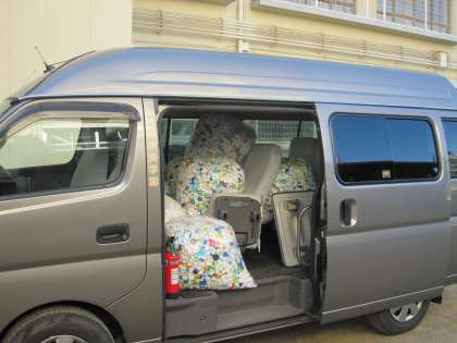 今日は大東中央幼稚園さんが、何と130キロ分のエコキャップを届けてくださいました。