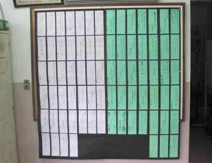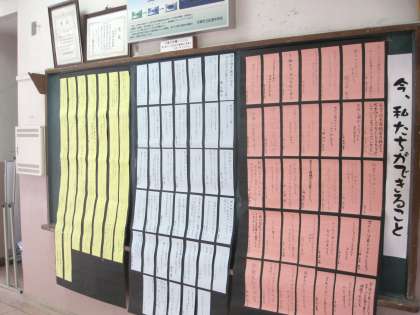生徒総会の取り組みを通して、自分自身が何を考え、どう行動していけばよいのかを短冊にまとめたものです。