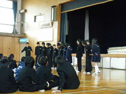最初に、各クラスからクラス自慢をしてもらいました。クラス全員で発表したり、ギャグやダンスを披露するなど、それぞれのクラスが工夫して、発表してくれました。