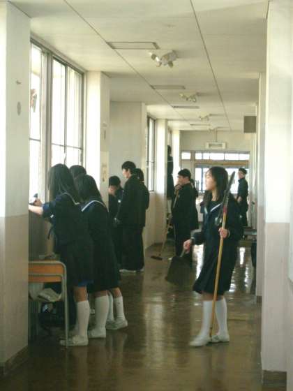 写真は6組、北館廊下の様子です。チャイムが鳴っても納得いくまで、きれいに仕上げていました。