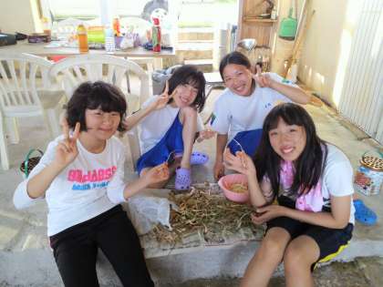 島らっきょうの皮むきなど