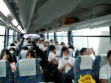 とあるクラスの車内では、出発と同時に、なんと、おやつタイムとなりました。