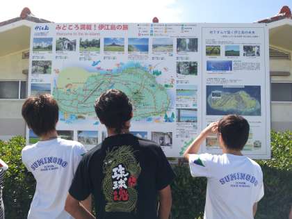 生徒たちは伊江島中を民家の方に連れていってもらっています。