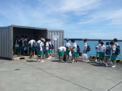 楽しかった民泊体験を終えて、伊江島港に続々と集合してきました。
