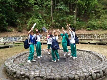 ウォークラリーのミッションで、「班で協力してキャンプファイヤーを表現しよう!」ということにチャレンジしています!!