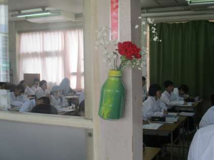 1年生の英語、国語です。3枚目は全学年の教室の入り口の一輪挿しです。昨日、新しいものを飾りました。
