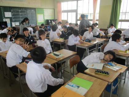 昼休み終わり(5時間目の予鈴)のチャイムが鳴った直後の教室です。授業開始時間までに教室に入って授業の準備をする習慣がついてきました。