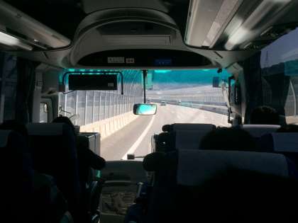 バスは、高速に乗りました。