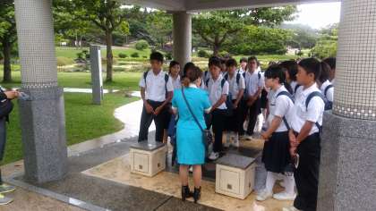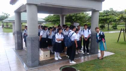 平和の礎でバスガイドさんのお話を聴いています。