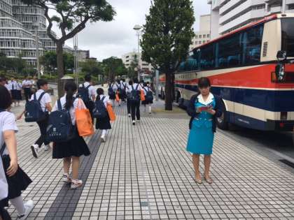 修学旅行 バス乗車