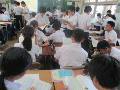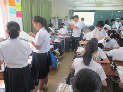 同じく3年生の国語の授業です。文章を読んで登場人物の人物像について考えていく授業です。任意に選ばれたペアで本読みをします。