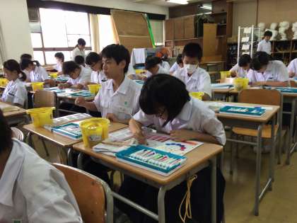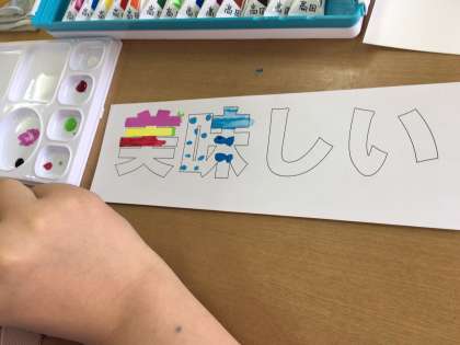 1年生の美術の様子です。授業のめあては「言葉のイメージに合う色を制作する!」です。素敵な作品がたくさんできました。