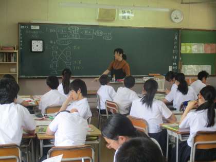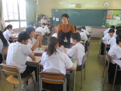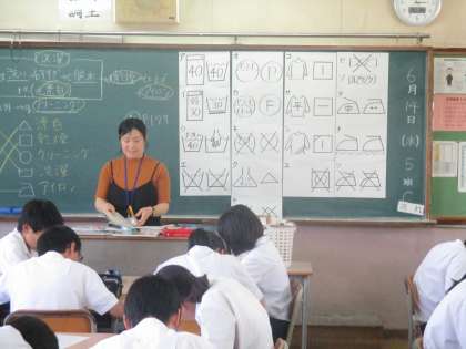 2年生の家庭科の授業公開です。衣服の手入れについてJISマーク等について学習しています。
