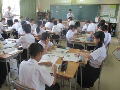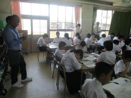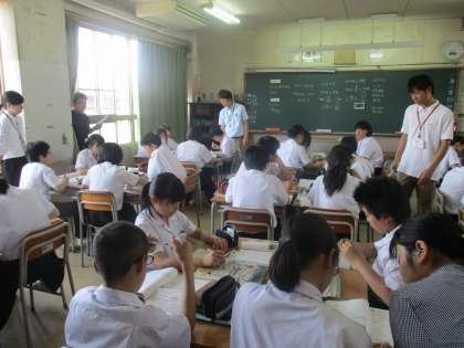 1年生の数学の授業です。文字式について生徒の身近な問題を解いています。