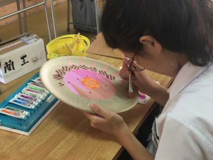 素敵な「おぼん」作成中です(2年生美術より)