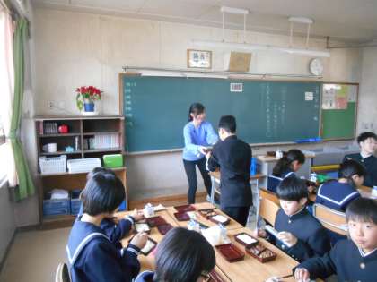 ほとんど混乱することなく、いただきますができました。1枚目はさっそくお代わりをした生徒です。元気です。