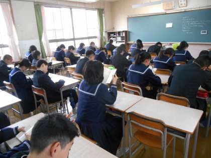 読書の時間の終了時刻間近の写真です。本の世界に集中している生徒も多いと思います。