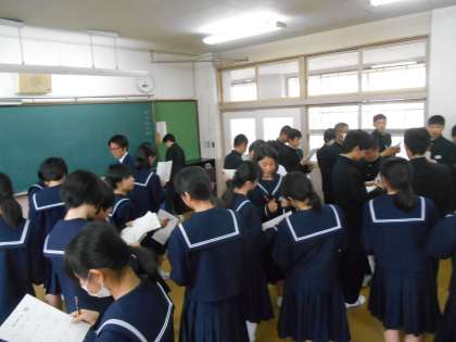 いろいろな条件を付けて人と人と話しながらのビンゴ大会です。よく話していました。