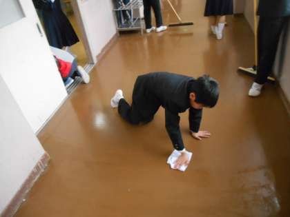 うれしいですねえ。廊下を手で一生懸命拭いていました。すばらしい。