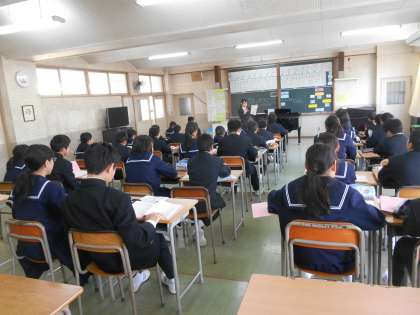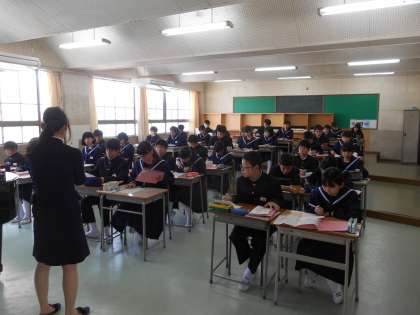授業の終わりの5分で「ふりかえり」を書いてもらいます、という話しをしているところでした。
