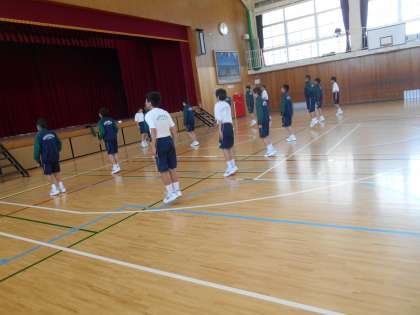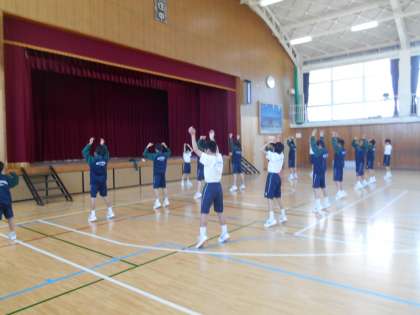準備運動をしていました。すごく声が出ていました。すばらしい。