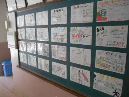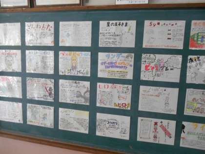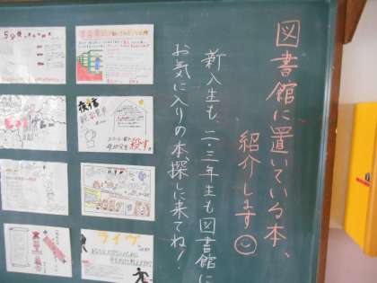 玄関に入ってすぐの掲示板にドカーンと掲示されました。生徒による図書紹介です。じっくり読んでみようと思います。