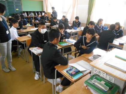 英語で自己紹介をしようと先生が指示をしていました。それで、さっそく学習班で自己紹介が始まりました。名前、年齢、好きな物を入れるように言っていました。