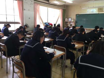 今日は、全国学力・学習状況調査(3年生)と大東市共通到達度確認テスト(1,2年生)が実施されました。どの学年の生徒も、テスト時間の最後までよく頑張っていました。