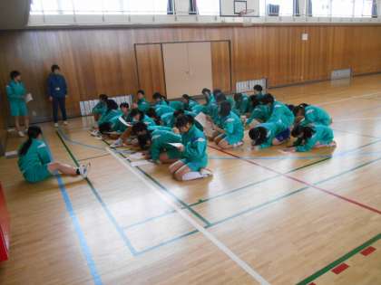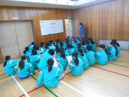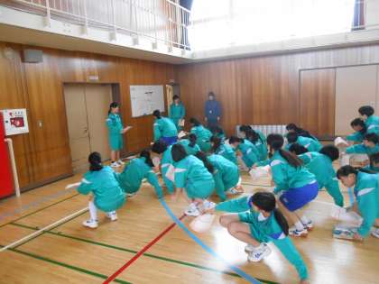 瞬時のうちに隊形移動できました。それも体育委員の号令です。スッと移動し、先生は大きな声を出すこともなく、腹筋運動の説明に入りました。すばらしい。
