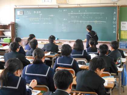 数直線の勉強をした後に、何問か先生から質問され、その答えを生徒が解説しながら書いていました。活動を取り入れたすばらしい授業と思いました。「今から○○について説明します。」ときっぱり言ったときには、ゾクゾクしました。