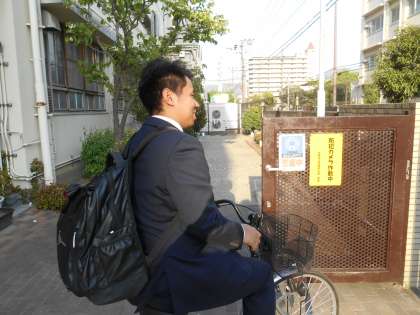ちょうど出るところだったので、撮影しました。住中は校区が広く、自転車が必需品です。