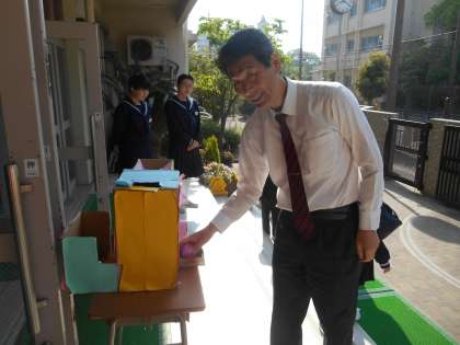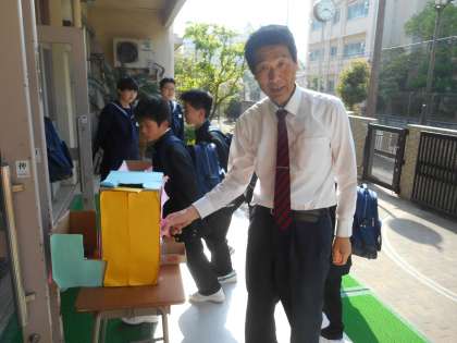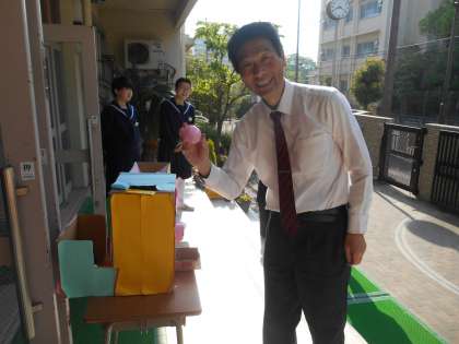 校長がエコキャップを寄贈しました。それで、ガラガラポンをしているところでした。結果は「小吉」でした。うれしいです。