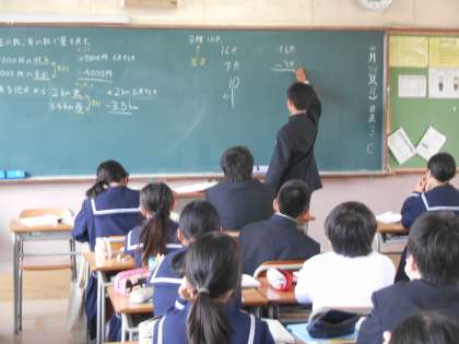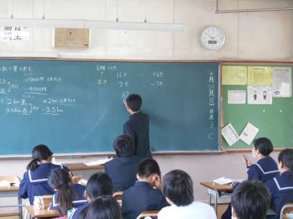正負の数を学習しています。先生から出された問題について解説をしているところです。