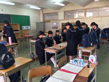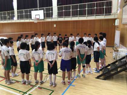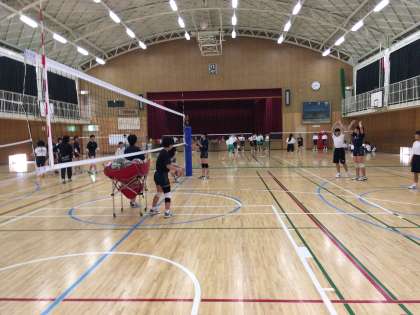 クラブ体験中の1年生です。バレーボール部、バドミントン部、吹奏楽部におじゃましました。