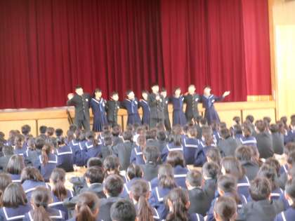 2年の学級委員会「WE ARE FAMILY」と叫び、肩を組んで左右に揺れています。後ろでは2年の先生たちが肩を組んで揺れていました。すごい光景です。